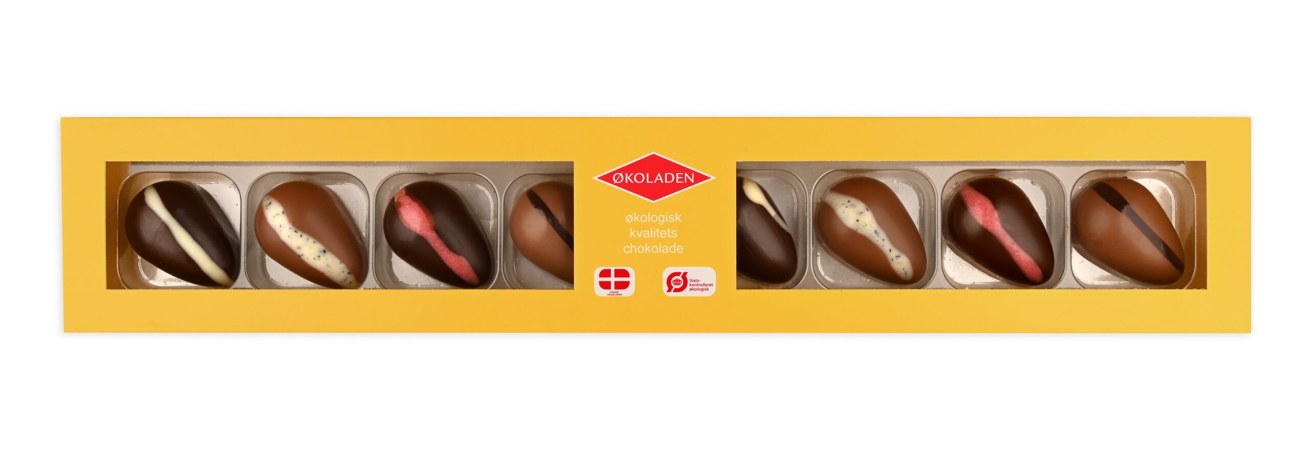 Otte fyldte mini-æg i gaveæske, hvor håndværket og arbejdet der ligger bag virkelig skinner igennem. Gaveæsken er perfekt til de mindre gaver. Indeholder: