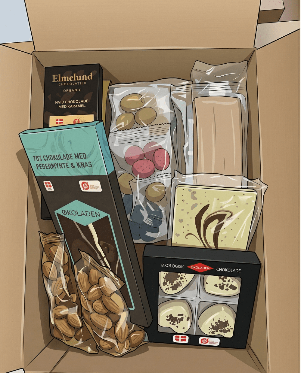 Vores Lykkepakke indeholder kun varer, der er helt i orden smagsmæssigt. Til gengæld kan de være knækkede, ikke helt perfekte i udseendet, uden en fin æske og eventuelt med kort holdbarhed. Dog er du med til at redde disse lækre produkter fra at blive kasseret.